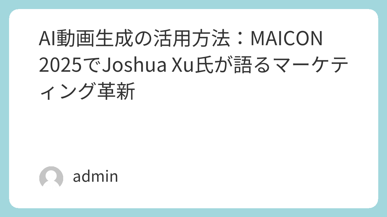 AI動画生成技術は、マーケティング業界における大きな変革をもたらしています。MAICON 2025でのJoshua Xu氏の講演は、この革新的な技術を実際のビジネスに活用するための貴重な機会となるでしょう。効率的なコンテンツ制作、コスト削減、品質向上を同時に実現する可能性を持つこの技術は、今後のマーケティング戦略において不可欠な要素となることが予想されます。企業の競争力向上と持続的な成長を目指すマーケティング担当者にとって、AI動画生成技術の習得と活用は急務といえるでしょう。