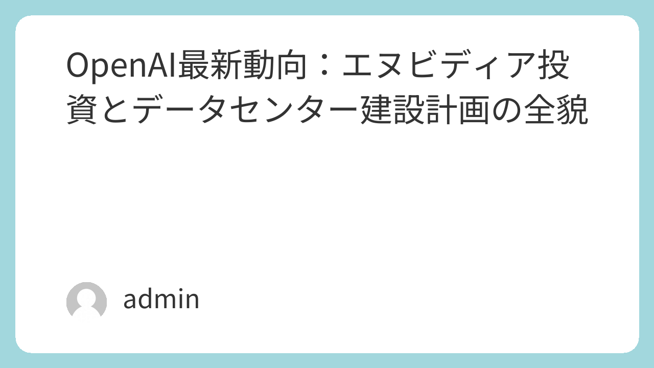 オープンAI(OpenAI)は、人工知能(AI)の研究開発を行うアメリカの企業で、ChatGPTなどの生成AI技術で注目を集めています。最近では大規模なデータセンター建設計画や、エヌビディアからの巨額投資など、AI業界を大きく動かすニュースが相次いでいます。